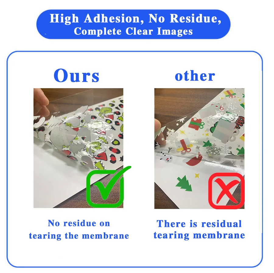 Yuqori suvga chidamliligi va ko'p qirrali qo'llanmalar asosiy nuqtalardan biridir. Bosilgan PET AB film stikerlari va kristal yorliqlari juda yaxshi suvga va xijolatga chidamli xususiyatlarga ega, sanoat suvga chidamliligi standartlariga javob beradi va nam muhitda ham barqaror ko'rinishni saqlaydi. Ular turli sohalarda keng qoʻllanilishi mumkin: shaxsiylashtirilgan telefon qoplamalari, sovgʻalarni qadoqlash, kosmetika yorliqlari, elektron mahsulotlarning logotiplari va kiyim-kechak aksessuarlari. UV DTF texnologiyasi murakkab plastinkalarni tayyorlash kerak bo'lmay, bitta bosqichda bosib chiqarishni ta'minlaydi, 1 dona minimal buyurtma miqdori bilan kichik partiya va shaxsiylashtirishni qo'llab-quvvatlaydi. Ushbu moslashuvchanlik korxonalarga har xil mijozlar ehtiyojlariga tezda javob berishga imkon beradi, individual DIY buyurtmalaridan tor -tosh tijorat ishlab chiqarishigacha.