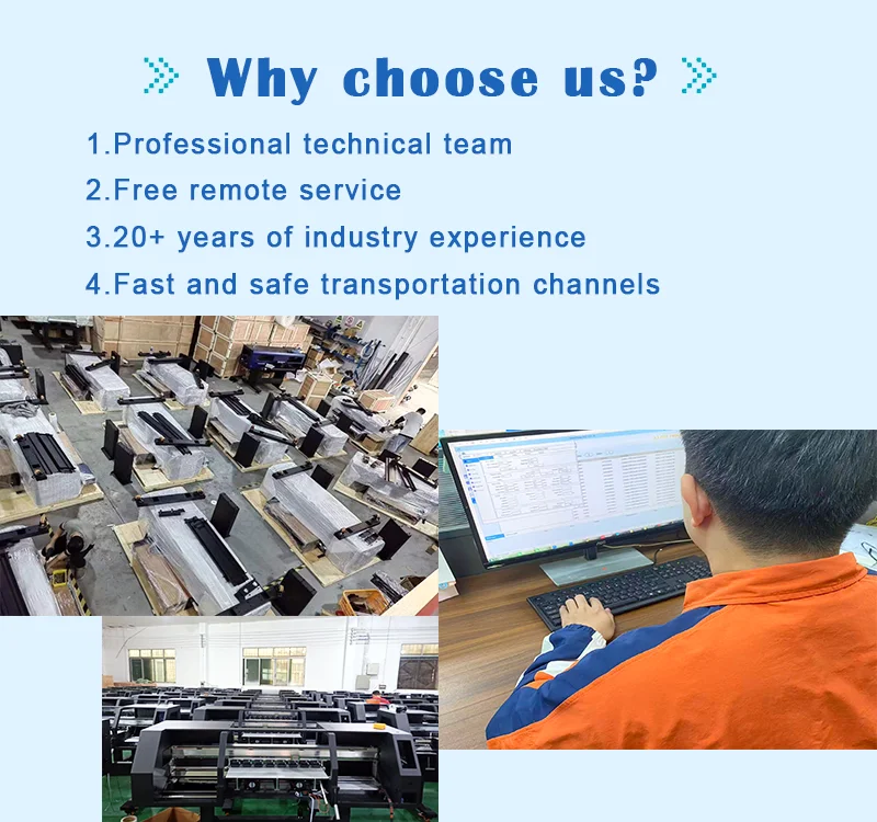 Aqlli boshqaruv va sanoat darajasidagi barqarorlik ishlash ishonchliligini oshiradi. Printer intuitiv touchscreen boshqaruv paneli hamda turli fayl formatlarini (PDF, JPG, AI) uzluksiz import qilishni va bosib chiqarish effektlarini haqiqiy vaqtda ko'rishni ta'minlaydigan kasb-hunar mutaxassislari uchun mo'ljallangan RIP dasturiy ta'minoti bilan jihozlangan. Aqlli nosozliklarni o'z-o'zidan aniqlash tizimi tint, changgina to'silishi va pechning ortiqcha isishi kabi muammolarni paydo bo'lishi bilan darhol ogohlantiradi, shu tufayli to'xtash vaqtini minimal darajada saqlaydi. Avtomatik printerga bosh tozalash va yopish tizimi nozzllarning to'silib qolishiga yo'l qo'ymaydi, XP600 boshining xizmat muddatini uzartadi. Og'ir po'lat ramka tuzilmasi yuqori tezlikda ishlayotganda tebranishni kamaytiradi, hatto uzoq muddat davom etadigan doimiy ishlab chiqarish jarayonida ham barqaror bosib chiqarish sifatini ta'minlaydi.