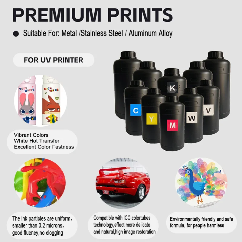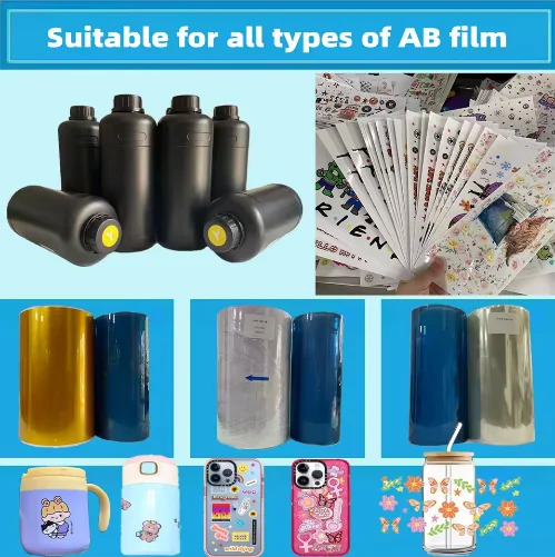 Xuddi shu tarzda tijorat reklama o'tkazishli nishonlar, shaxsiylashtirilgan bezakli yorliqlar yoki yuqori sifatli boshqaruv yorliqlarini ishlab chiqarish uchun bo'lsin, Hot Sale 1000ml CMYKW Vernish 6 rangli UV-49 so'yuvchi bo'yoq keng qamrovli va ishonchli echim taklif etadi. U a'lo rangli ko'rsatkichlarni, mustahkam chidamlilikni, keng mos kelish xususiyatini hamda arzonligini birlashtirib beradi va XP600, I3200 yoki TX800 print hovuzli raqamli UV printerlaridan foydalanadigan bosma bizneslar uchun ideal iste'mol materiali hisoblanadi. O'zining a'lo darajadagi ishlash xususiyati hamda bozordagi ommaboplik darajasi bilan ushbu UV-49 so'yuvchi bo'yoq bosma sifatini yaxshilash va barqaror o'sishga erishish uchun bizneslar uchun asosiy tayanchga aylanmoqda.